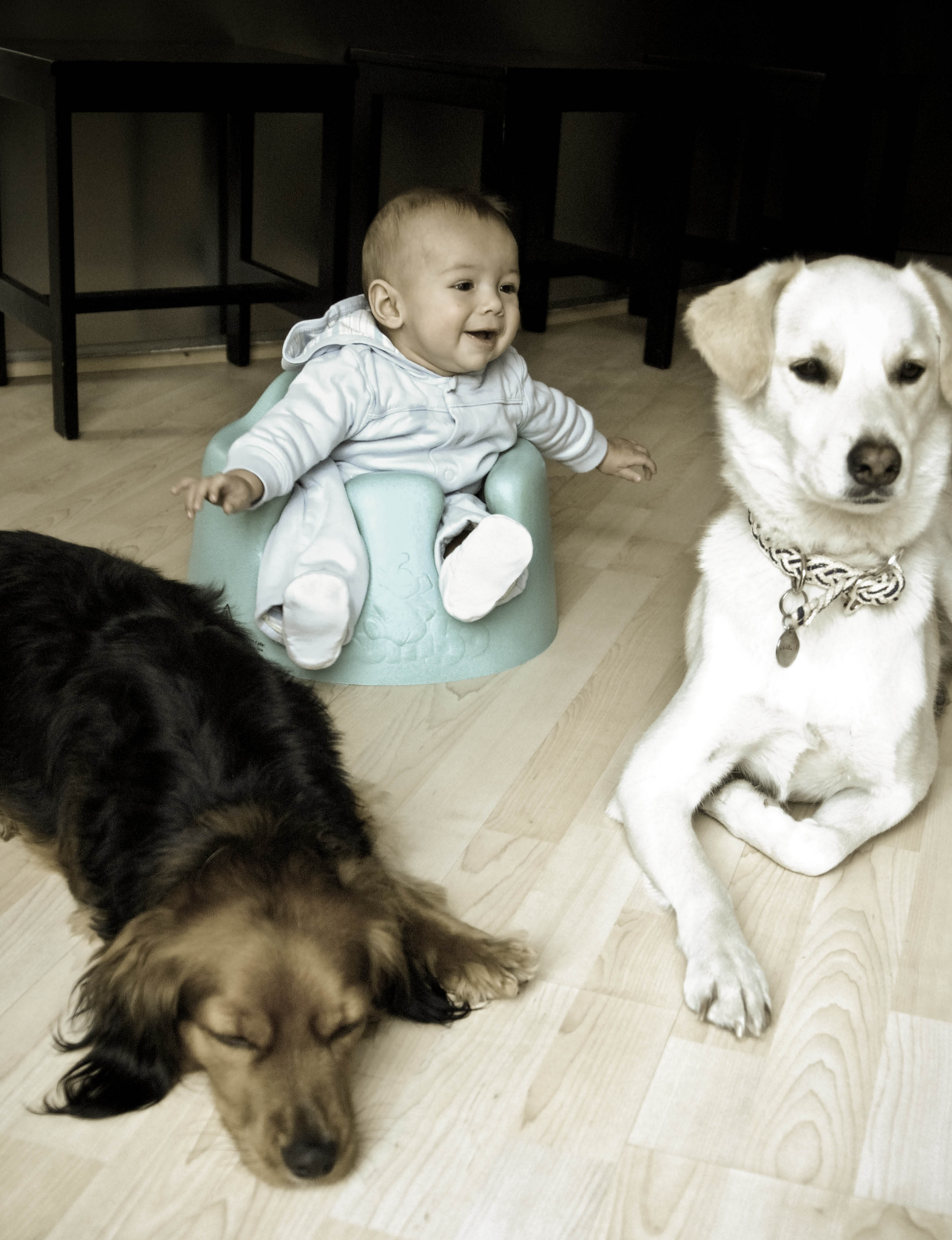 such a cut baby; Dexter’s expression is priceless…I’m glad that he likes to be around the calm dogs…and his furry friends look on guard