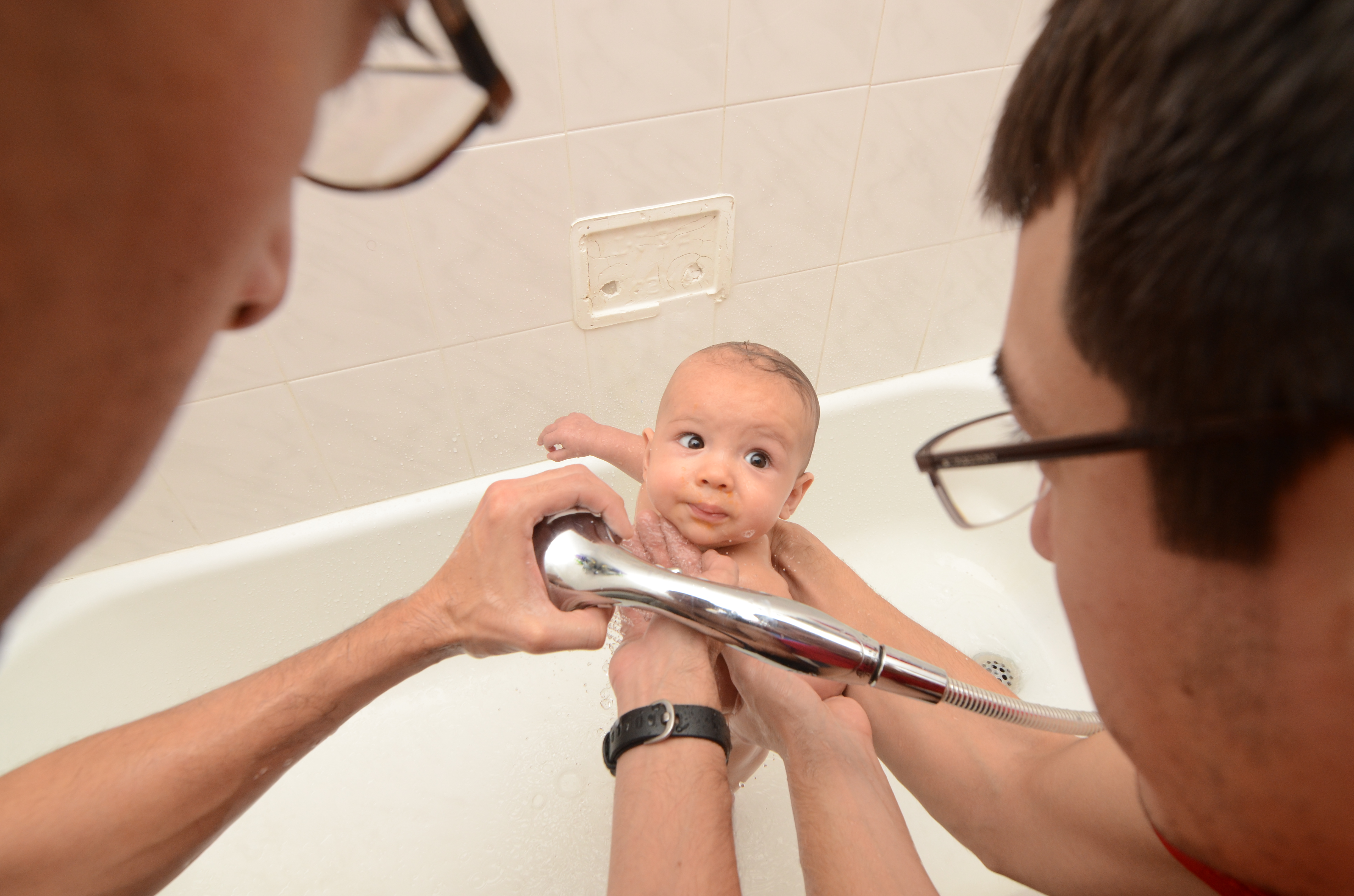 Dexter has developed a rather unfavorable morning habit of “messing himself” exactly when only Dad and Grandpa are in the room. Apparently today required dad, an uncle and a grandpa to do the wash down. I think it’s all part of Dexter’s plan to recruit more cowboys to his bathtime rodeo.