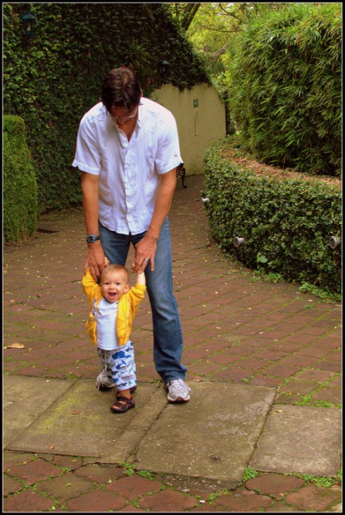 Walking with Daddy to the pool
