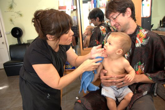 While we were back in Moline this summer, we finally broke down and gave Dexter his first haircut.
