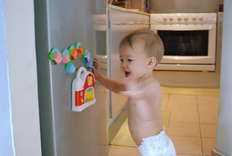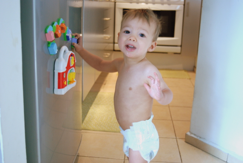 So a very special thank you goes out Cassie for this clever present! Now Dexter can be entertained at a safe distance from the stove … and my spice shelf, which is all too tempting for a one-year old.