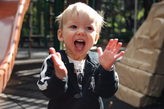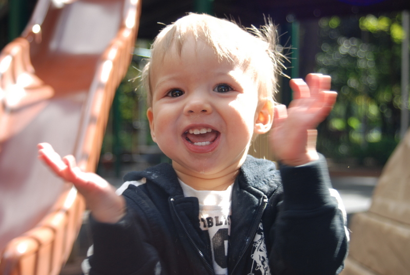 Dexter took a few more steps on his own this weekend! I’ll admit that I tricked him – he was so excited to get to the slide, so I slipped my finger out of his hand and he kept right on going. He stopped dead in his tracks as soon as realized he was on his own.