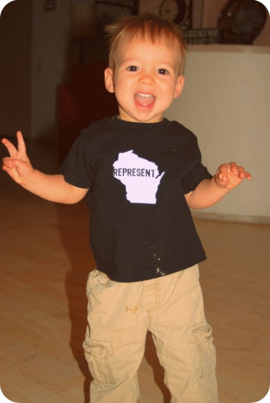 Gallery WI Represent 24 Monday Sep 2012 Posted by aeizzy in Everyday Life ≈ 3 Comments Tagschildren, Dexter, family, life, parenting, personal Dexter’s poor wardrobe is completely dominated with Bears clothes. Even though he does not own one single Packers item, at least we have this WI t-shirt for tonight’s Monday Night Football game! Share this: Click to share on Facebook (Opens in new window) Facebook Click to share on Pinterest (Opens in new window) Pinterest Click to share on X (Opens in new window) X Click to email a link to a friend (Opens in new window) Email Click to print (Opens in new window) Print Like Loading... Related