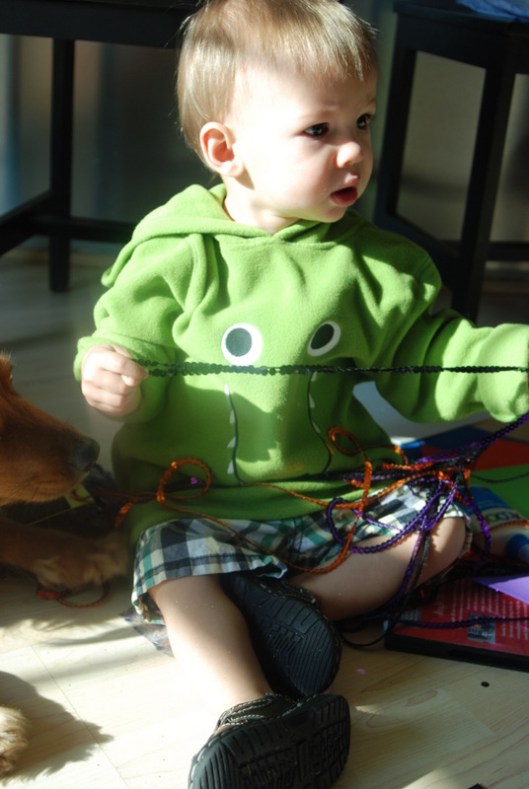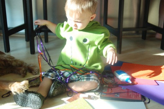 I also learned that Dexter likes crafts! Or at least playing with the supplies, which I can work with.