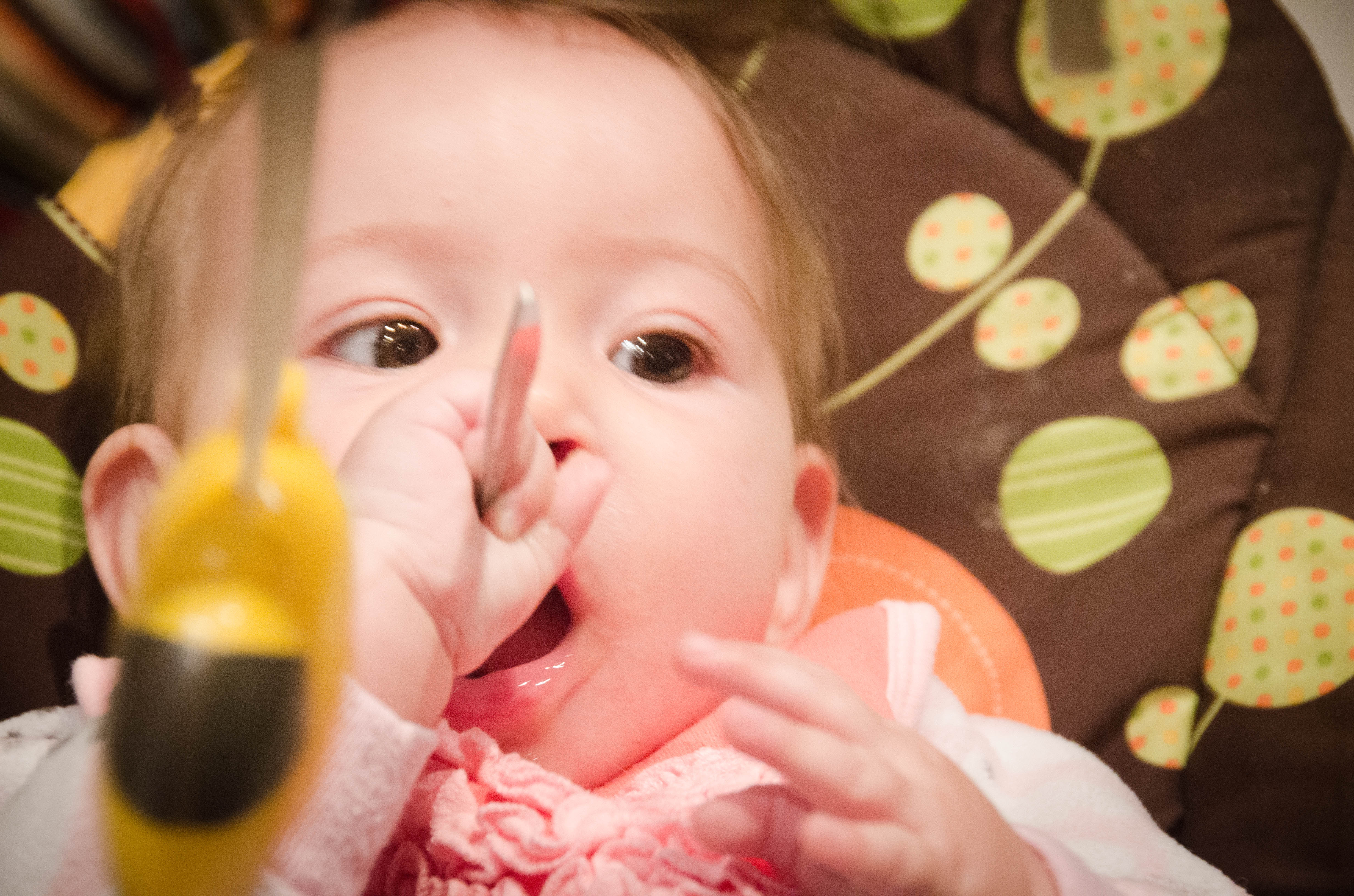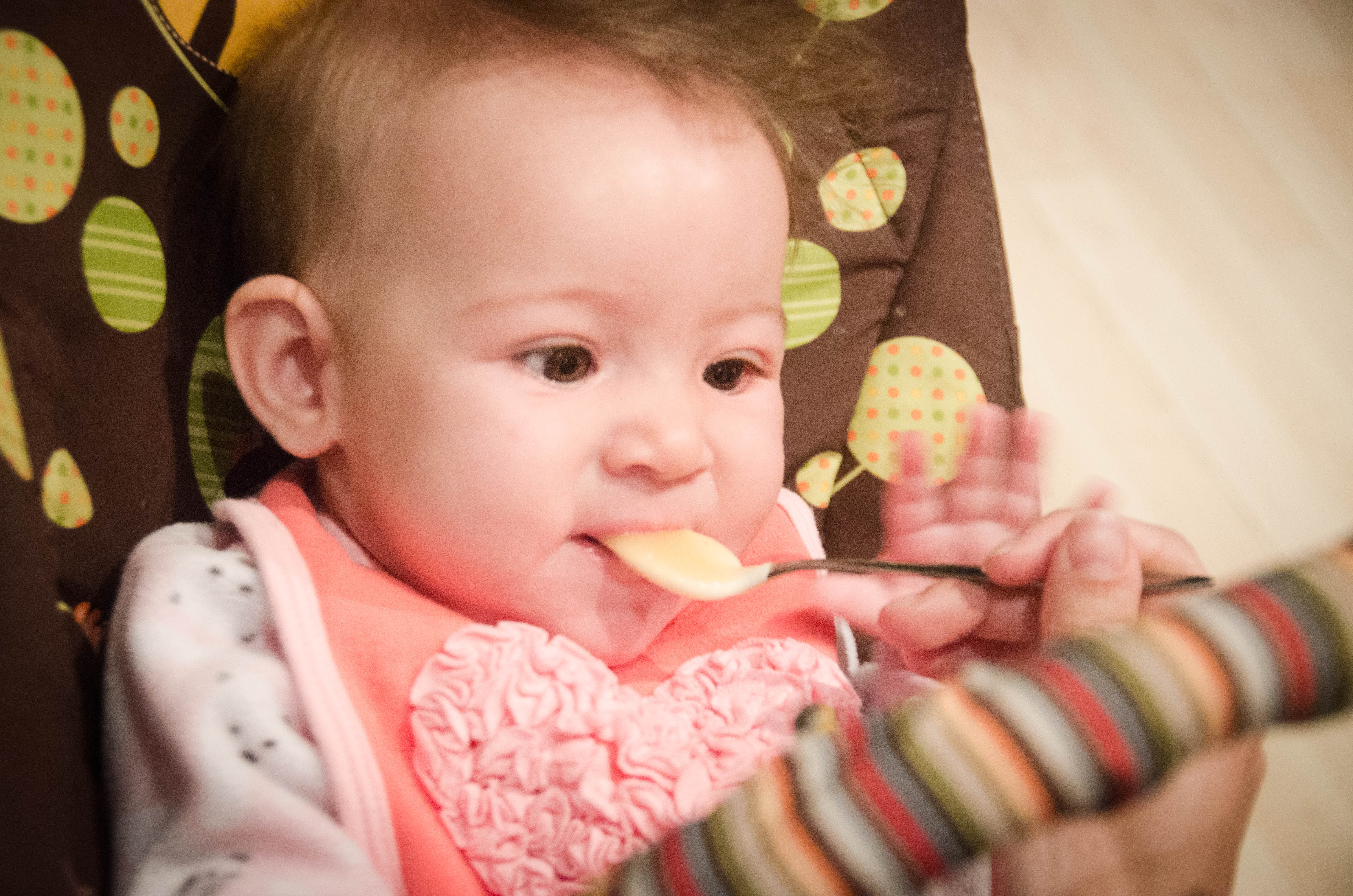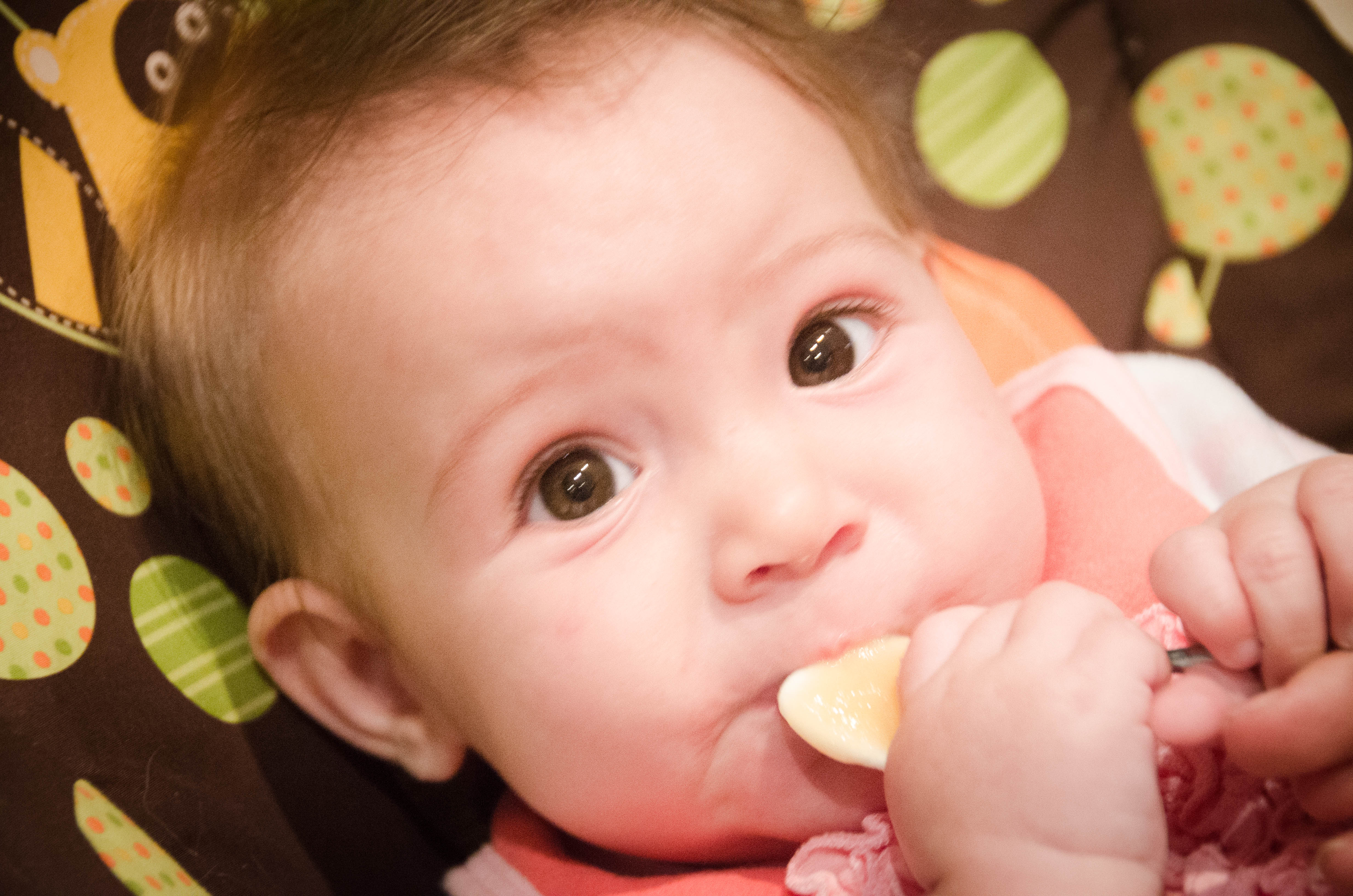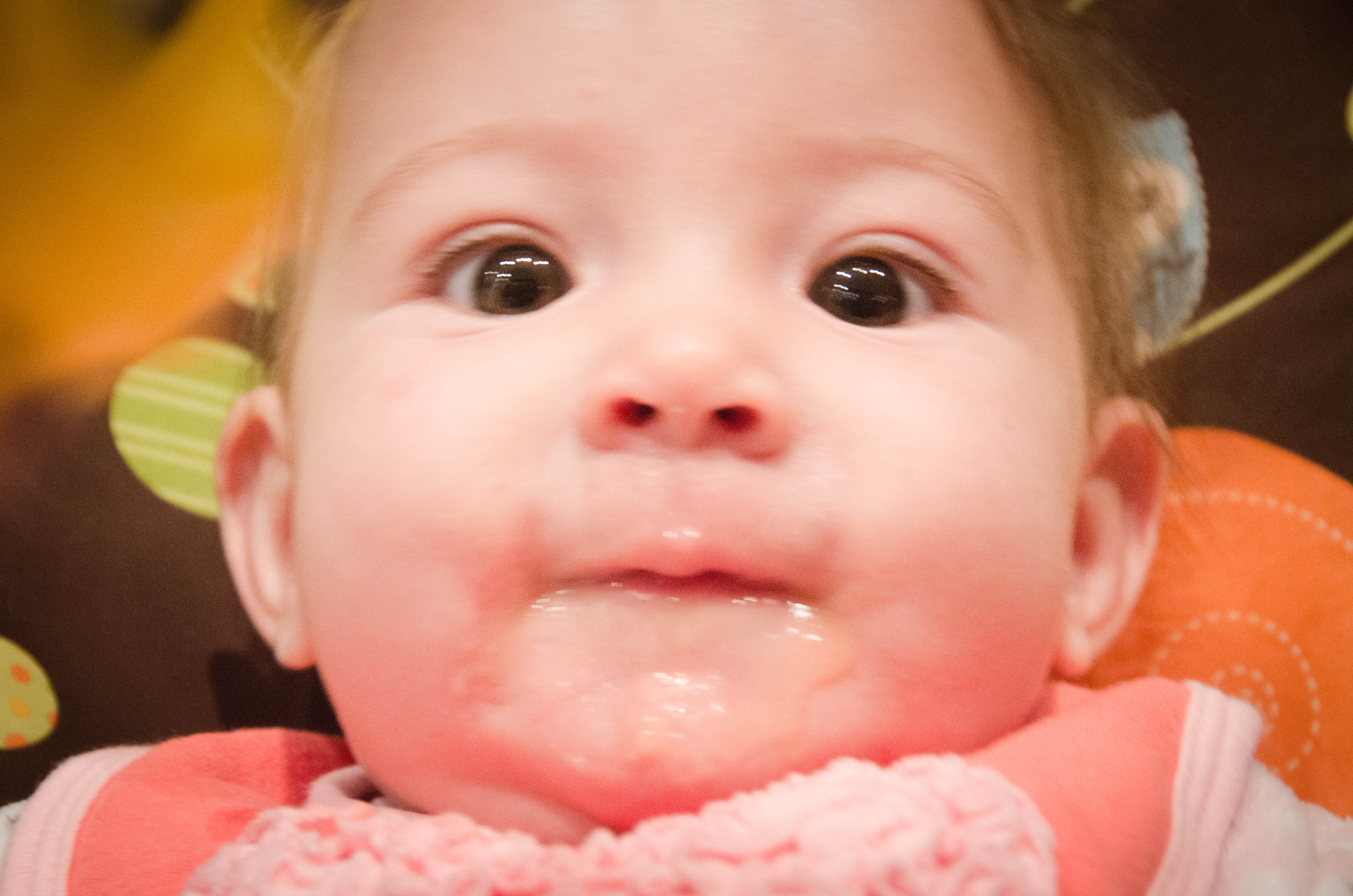 It seems like just yesterday we were giving Dexter his first food {remember this?}. Alex tried apples as her big introduction to baby food … she wasn’t really impressed!