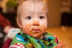 Dexter believes anything that lands in his mouth is his to keep … even the spoon that delivers the food. He’ll hold it like this until he gives me a little yell for not putting more food on the spoon.