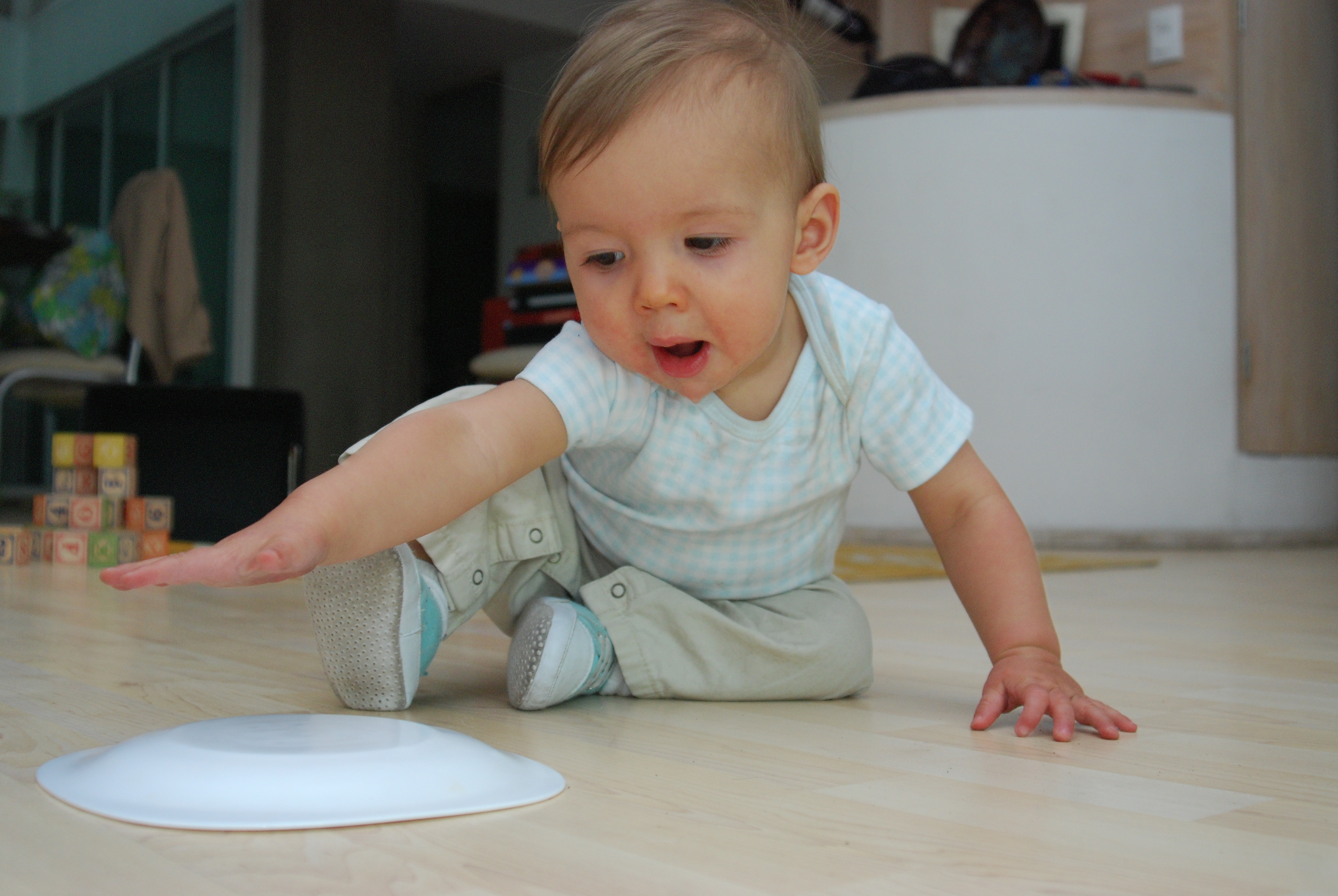 For months he has been getting around with his awkward move of scooting/rolling/sitting. (here) (here) and (here) And his new milestone achievement certainly didn’t come without a few bumps and bruises (here).